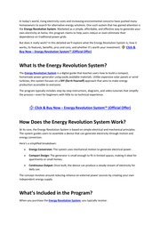 The Energy Revolution System is a digital guide that teaches users how to build a small-scale power generator at home. Unlike traditional solar panels or wind turbines that require heavy investment, this system claims to use low-cost, easily available components .