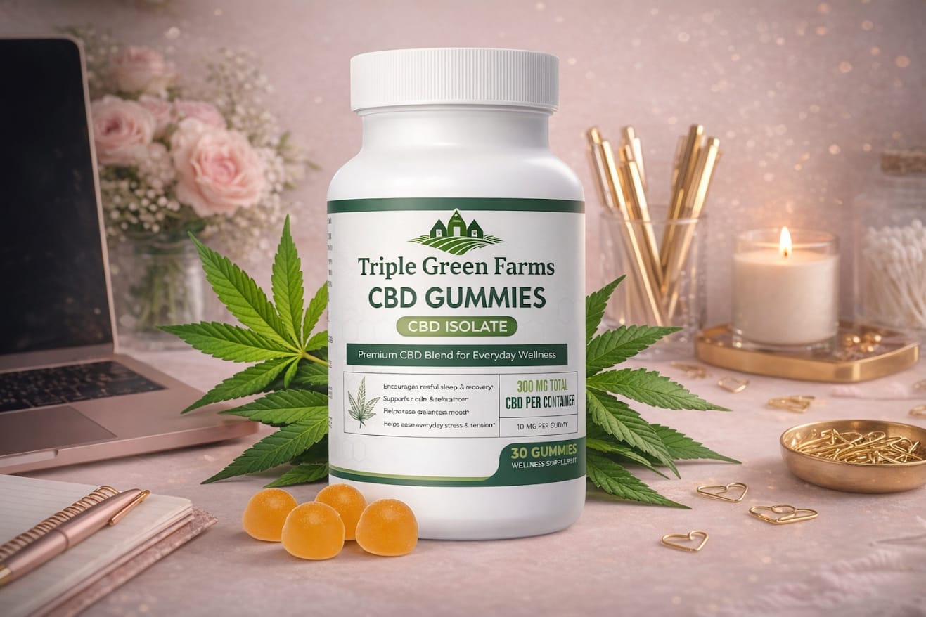 Triple Green Farms CBD Gummies are edible supplements infused with cannabidiol (CBD), a natural compound derived from hemp plants. Unlike THC, CBD does not produce a “high,” making it a safe and non-psychoactive option for daily wellness support.These gummies are designed to provide a simple, tasty, and discreet way to incorporate CBD into your routine without the need for oils, tinctures, or capsules.