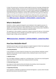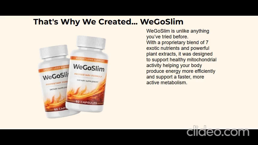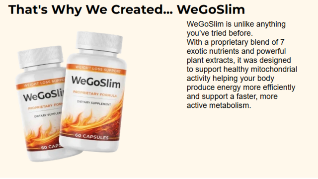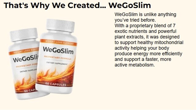 WeGoSlim is a dietary supplement created to support healthy weight management using natural ingredients. It is designed for people who struggle with stubborn fat, low metabolism, food cravings, and low energy levels.